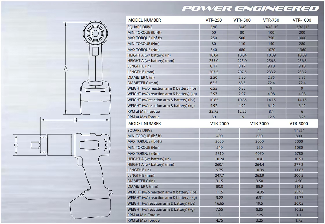 Uit onze ervaring hebben we perfectie geleerd. De eerste VOLTA Serie sleutel veranderde alles in de industriële momentsleutelindustrie. Met de VOLTA-R Serie tillen we perfectie nu naar een nieuw niveau. Ontworpen om verhoogd koppel, verhoogde duurzaamheid en verhoogde snelheid te bieden, terwijl het gewicht wordt verminderd, zal de VOLTA-R de gebruiker voorzien van een industriële momentsleutel op batterijen die taken efficiënter kan voltooien, inclusief onderhoud in het veld.